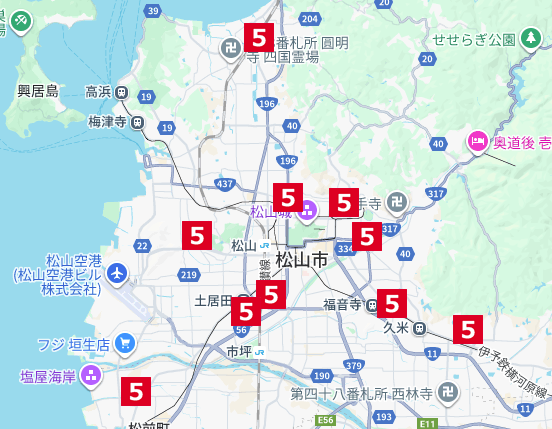 そんな毎日個別塾5-Days、愛媛県のまつやま45地区に分けてお近くの教室をご紹介します。
