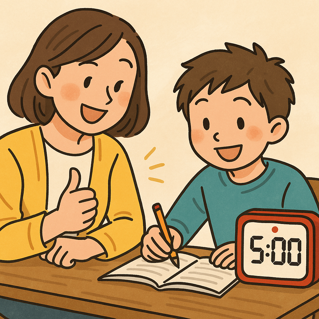 1回の学習時間が25分しかないので、集中力が切れそうになっても、「このくらいなら頑張ろう」という気持ちが湧き上がってきます。ポイントは5分間の休憩です。1回の学習時間を25分に設定しても、連続しておこなえば区切った意味がありません。