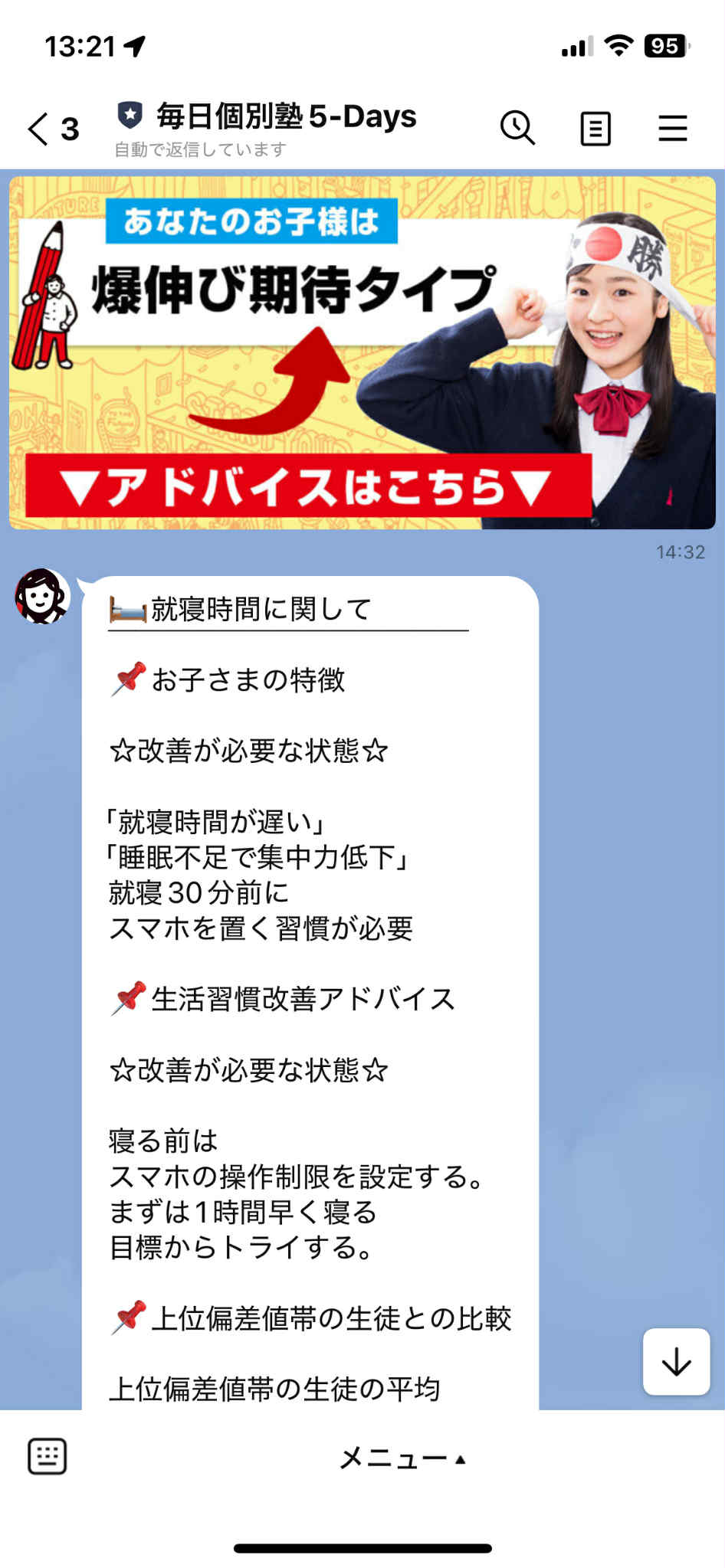 ・「今日は勉強しなくても大丈夫」