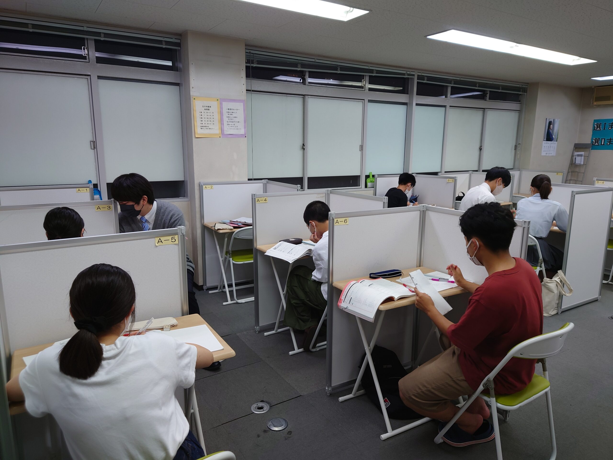 5-Daysでは、生徒一人ひとりの学力や目標、性格に合わせて指導を行う完全な個別指導スタイルを採用しています。先生1人に対し生徒が2〜6人という少人数制のため、質問もしやすく、つまずきをその場で解消できます。