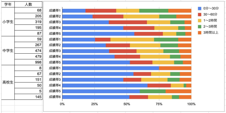 上記の結果からわかるよう、「本を読む習慣がある生徒ほど成績上位層に多い」という傾向が見られました。