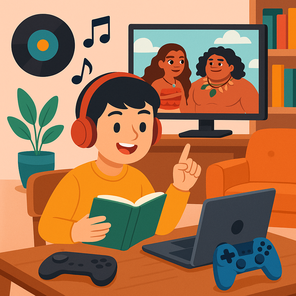 ディズニー映画やピクサー作品、またはNetflixやYouTubeの英語アニメなど、映像で楽しむ英語体験もおすすめです。