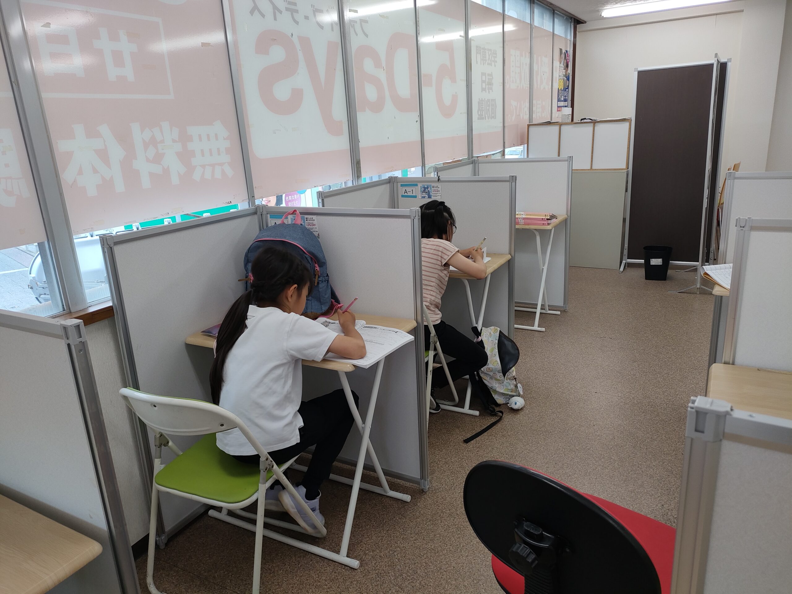 5-Daysの自習室は、ひとり一人のスペースが確保され、集中して勉強できる環境が整っています。是非ご活用ください。